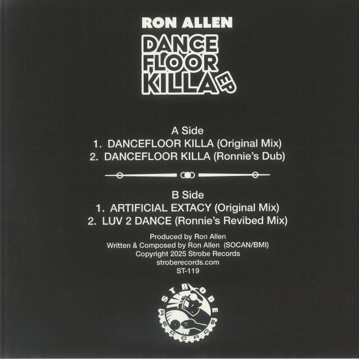 Ron Allen’s Dancefloor Killa EP showcases the Toronto-based producer’s deep roots in early 90s house and techno, reflecting decades of refined skill. The title track delivers gritty dub techno echoes reminiscent of Delano Smith, while the Ronnie dub version offers a more radiant sound. "Artificial Extacy" blends clean production with warm synth textures and atmospheric whistles, adding depth to its driving beats. The "Luv 2 Dance" (Ronnie Revibed mix) completes the EP with a smooth, immersive vibe, making this release a compelling listen for fans of expertly crafted electronic music.